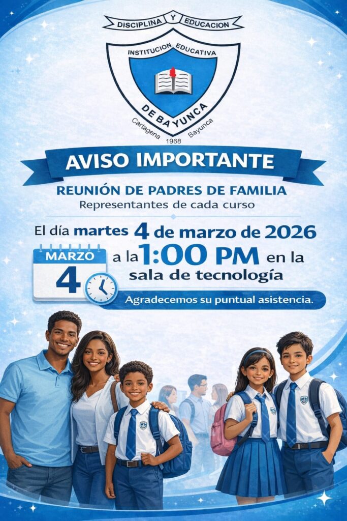 La Institución Educativa Debayunca invita cordialmente a los representantes de cada curso a participar en nuestra próxima reunión de padres de familia.